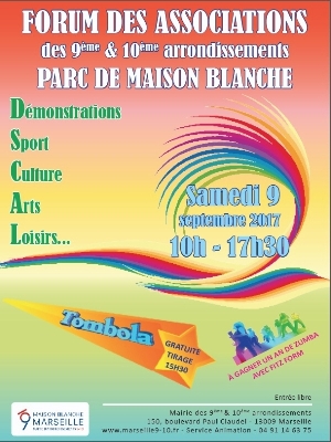 Forum des associations des 9e et 10e arr Entrée libre De 10h à 17h30 Mairie de Maison Blanche 150 boulevard Paul Claudel 13009 Marseille ![]() |